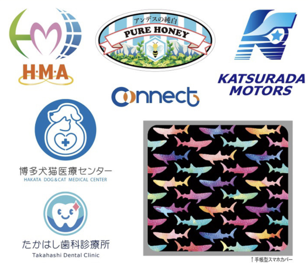 ロゴ、食品パッケージ、マスコットキャラクター、スマホケースなど
